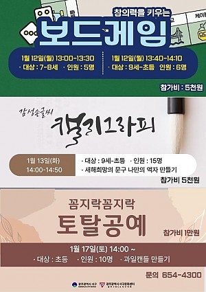 어린이 방학 특강 "꼼지락 공방" 신규 등록 안내