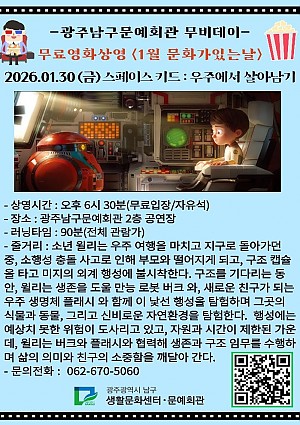 남구문예회관 무비데이 - <스페이스 키드 : 우주에서 살아남기> 신규 등록 안내