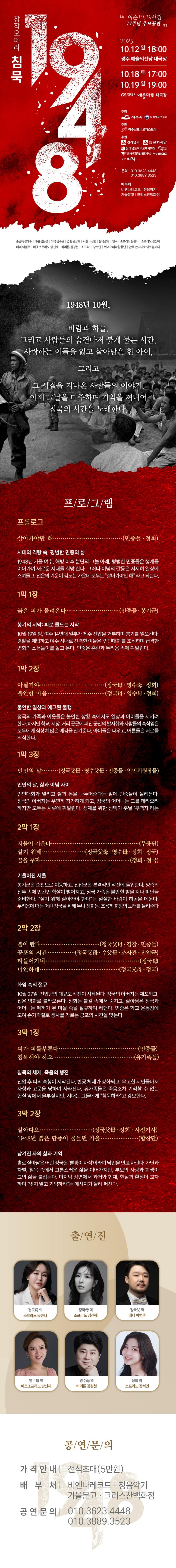 1948년 여수에서 발생한 14연대 군인들의 제주 출병 거부 및 봉기 이후 진압 과정에서 벌어진 민간이 피해를 중심으로 구성된 창작오페라다