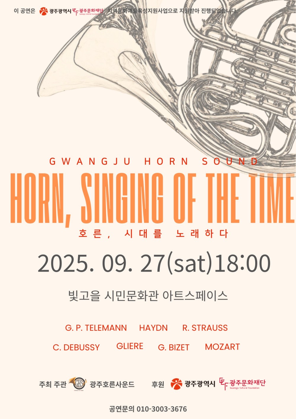 광주를 대표하는 30인조 호른 오케스트라가 바로크부터 현대까지 시대별 호른의 다양한 매력을 웅장한 소리와 해설로 선사합니다.