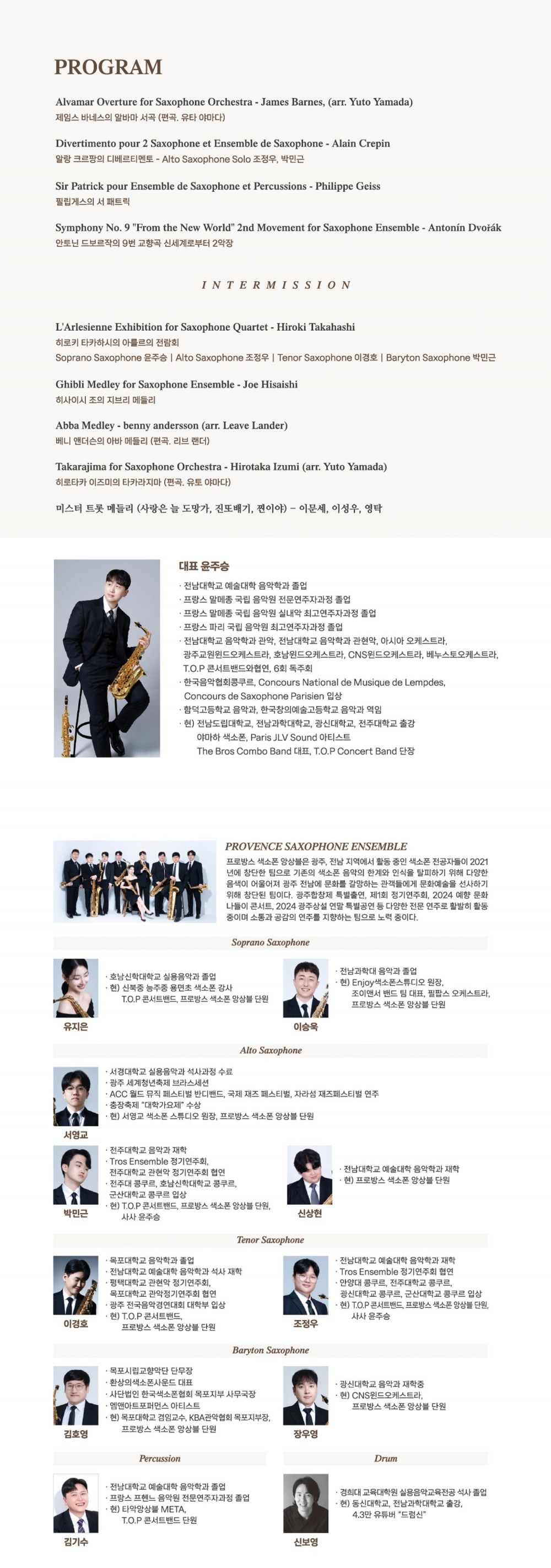 플레이광주 > 클래식·오페라 > 프로방스 색소폰 앙상블 제2회 정기연주회