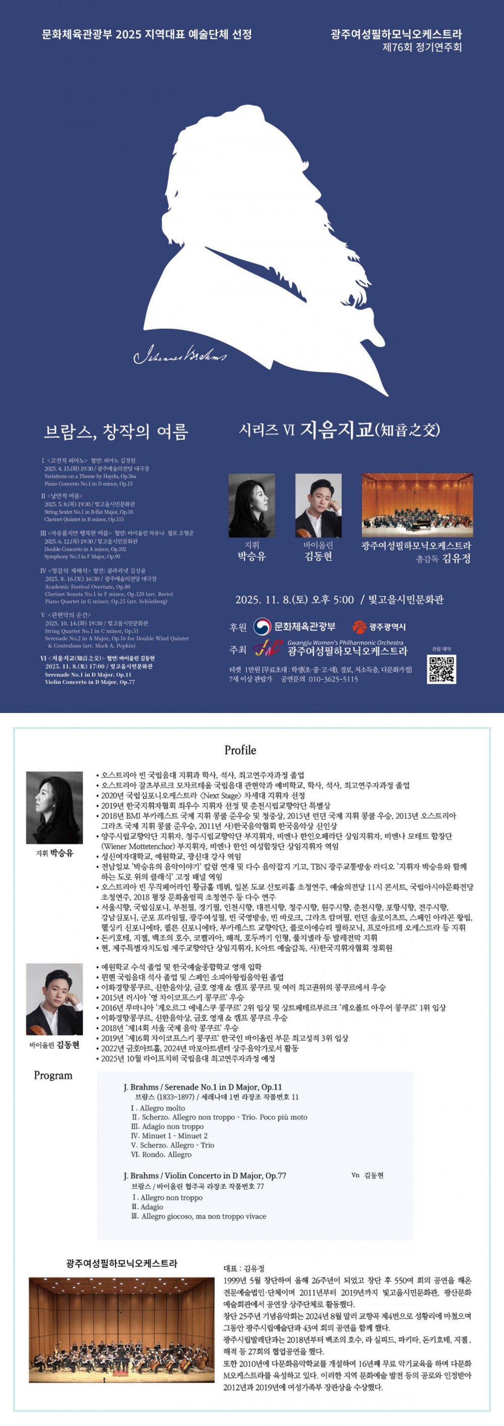 2025. 11. 8. 광주여성필하모닉오케스트라 <브람스, 창작의 여름> 시리즈 6 지음지