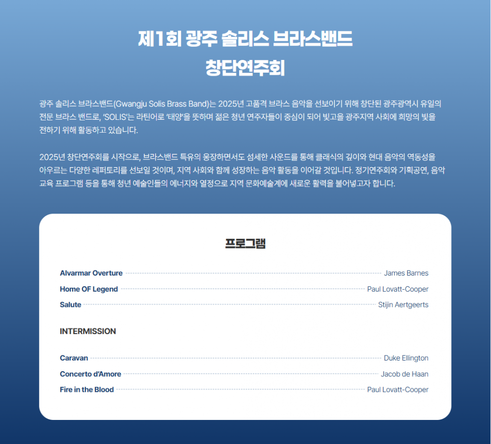 플레이광주 > 클래식·오페라 > 제1회 광주 솔리스 브라스밴드 창단연주회