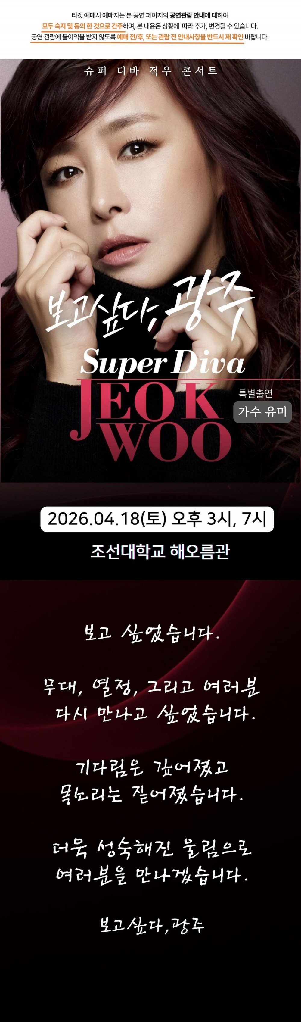 플레이광주 > 콘서트·뮤지컬 > 슈퍼디바 적우 콘서트 〈보고싶다, 광주〉