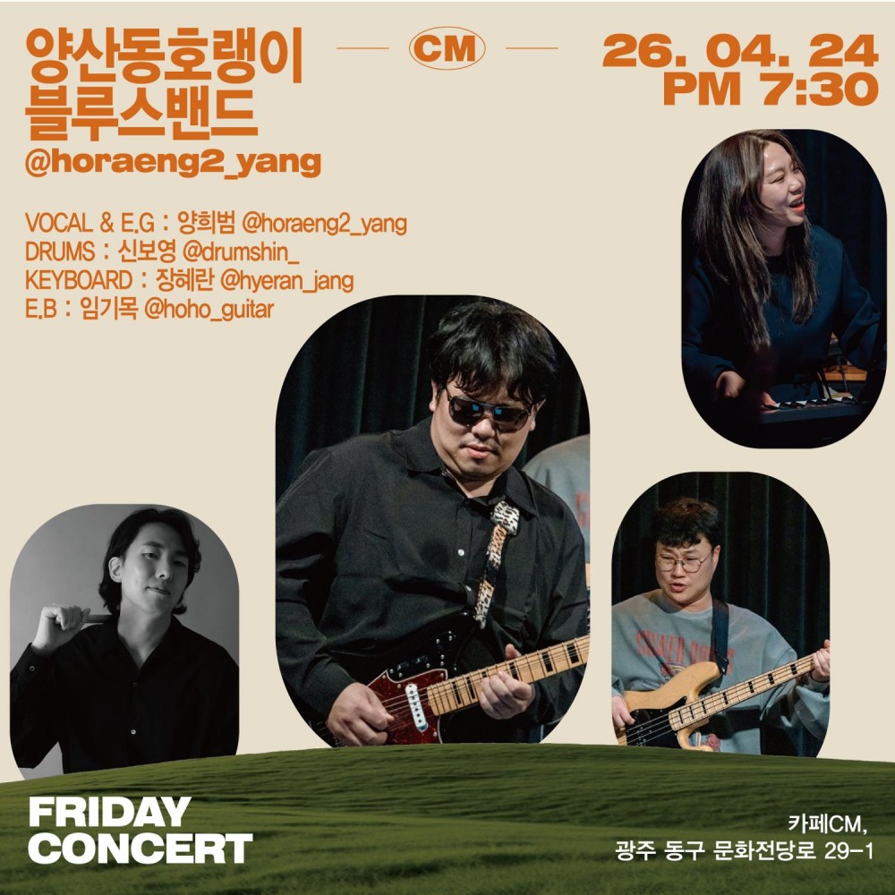 노래하고 연주할 예정입니다. 3월의 열기를 그대로 이어 4월에 연이어 울리는 양산동호랭이의 외침을 듣고 즐기고 맛보고 함께 노래하는 멋진 무대를 다시 한번 기대합니다. 감사합니다.