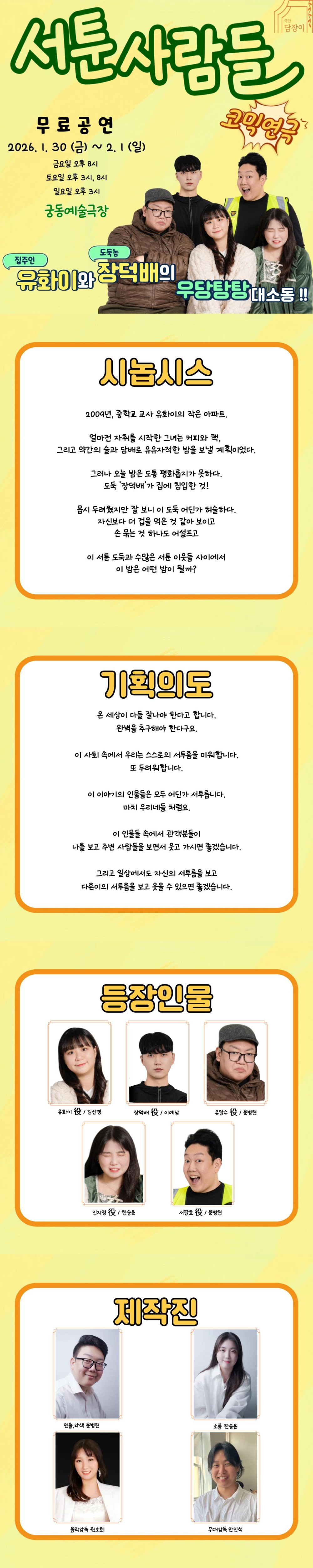 이 인물들 속에서 관객분들이 나를 보고 주변 사람들을 보면서 웃고 가시면 좋겠습니다.