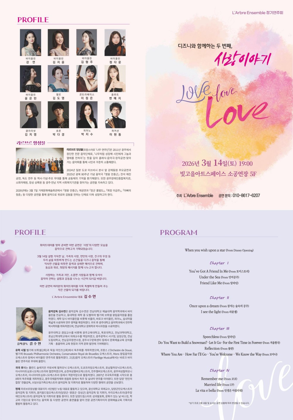 디즈니 영화 속에서 만났던 다양한 사랑의 형태들을 연주로 만나볼 수있습니다!