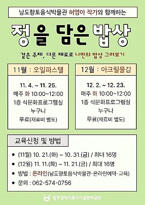 2025년 하반기 남도향토음식박물관 〈허영아 작가와 함께하는 정을 담은 밥상〉