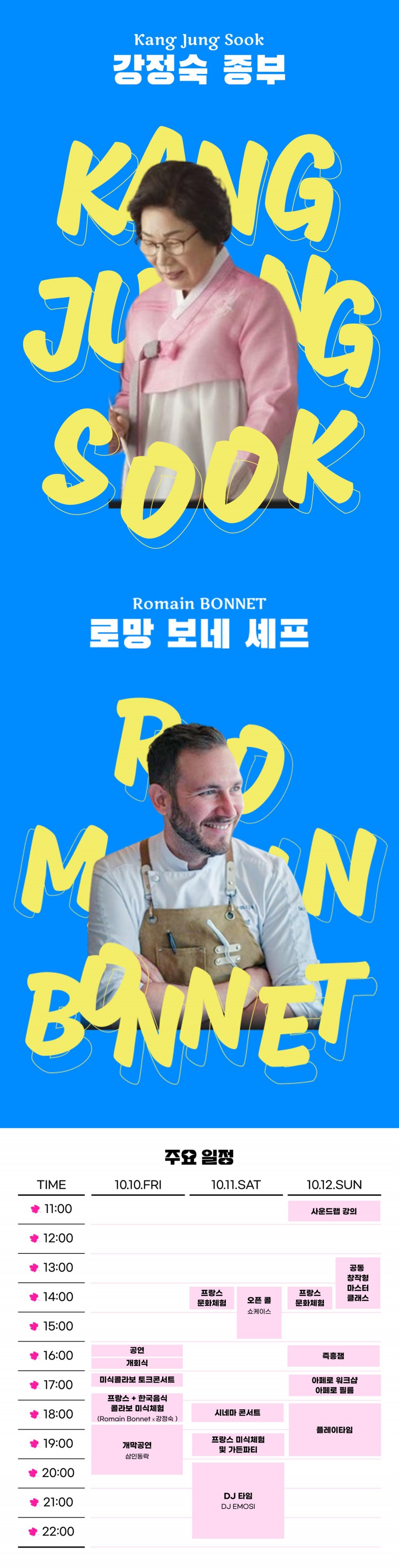 * 프랑스 미슐랭 쉐프와 한국의 강정숙 종부님의 콜라보 식사가 제공됩니다. 티켓 가격에는 식사 가격이 포함된 가격입니다.