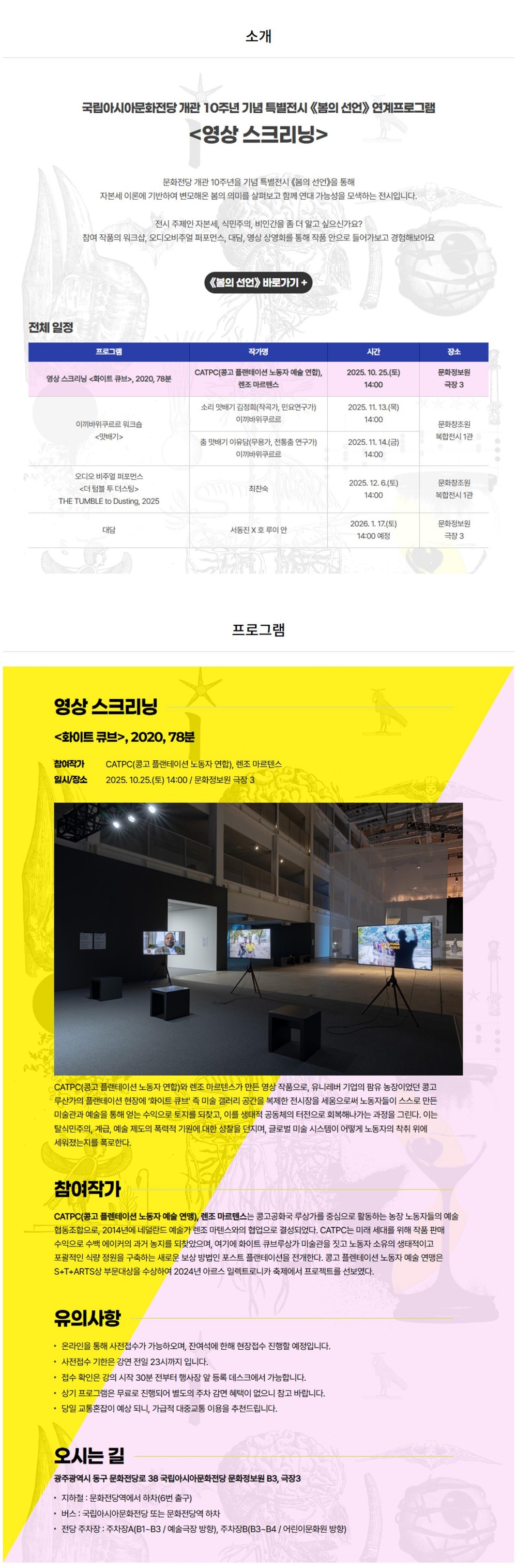 《봄의 선언》연계프로그램 CATPC <화이트 큐브> 상영회
