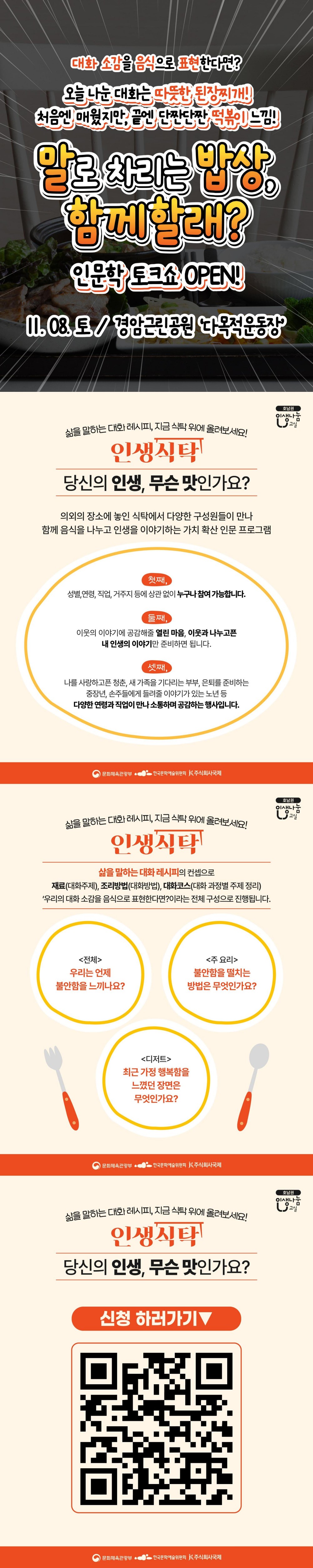 함께하는 인생식탁은 인생나눔교실 인문 프로그램으로 문화체육관광부가 주최하고 한국문화예술위원회가 주관하는