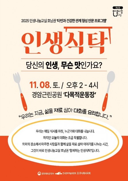 당신의 이야기는 어떤 맛인가요? 말로 차리는 밥상, 인생나눔교실 호남권과 대화 한 끼 어떠세요?