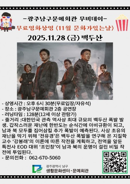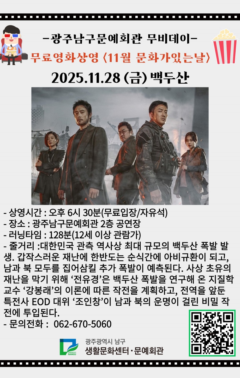 [문화가있는날] 2025년 11월 무료 영화상영 - <백두산>