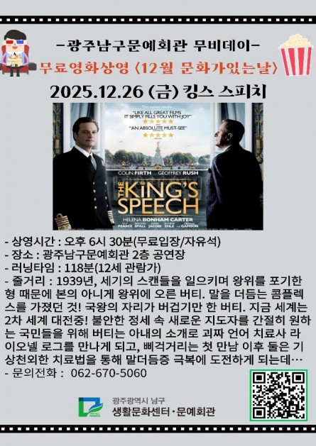 [문화가있는날] 2025년 12월 무료 영화상영 - <킹스 스피치>