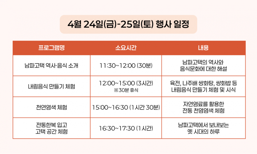 전라남도 나주 남파고택에서 진행되는 전통체험 프로그램에 신청해 주셔서 감사합니다.