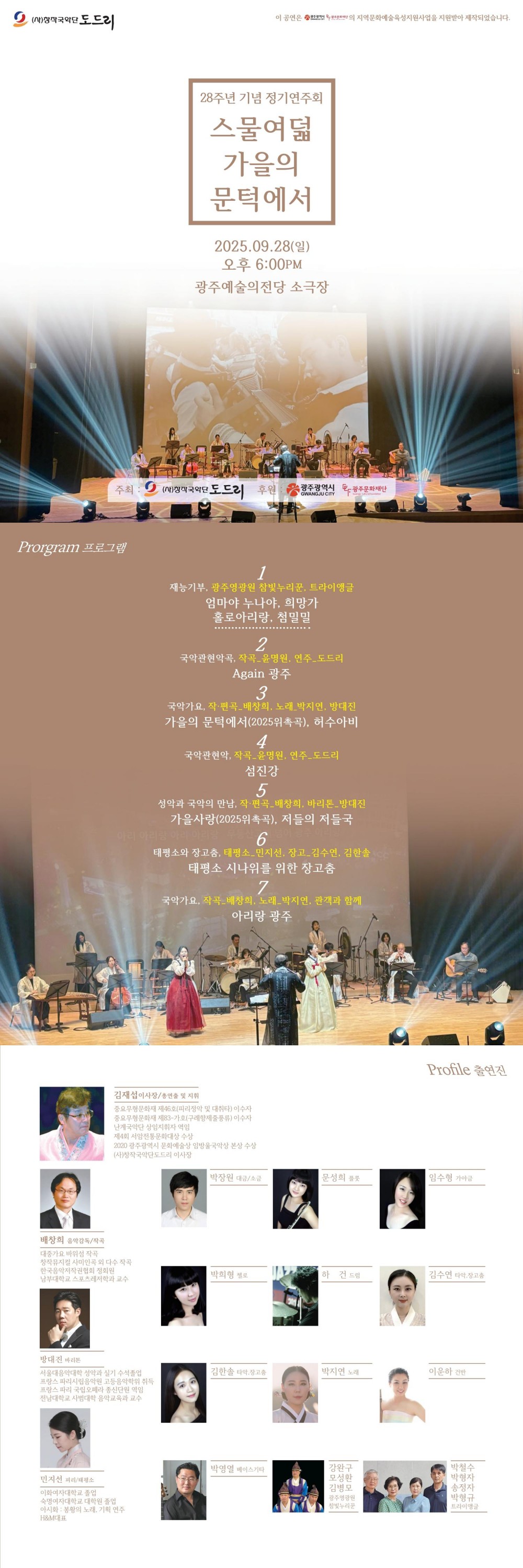 ‘Again 광주’, ‘심청, 세상의 별이 되다’, ‘섬진강’, ‘가을의 문턱에스물여서’, 그리고 관객과 함께 부르는 ‘아리랑 광주’까지!