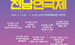 [순천=광주타임즈] 이승현 기자=(사)한국연극협회 순천시지부는 ‘삶이 있는 연극’이라는 주제로 제44회 전남연극제를 오는 13일부터 22일까지 순천문화예술회관 대극장에서 개최한다고 10일 밝혔다.이번 연극제는 역대 최대 규모인 전남연극협회 소속 7개 지역 극단이 참가한다. 각 극단의 연극 경연을 통해 오는 7월 3일부터 8월 5일까지 부산에서 열리는 ‘제44회 대한민국연극제’에 참가할 전남 대표 작품을 선발하게 된다.공연 일정…