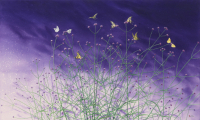 바쁜 일상생활에서 문득 하늘을 쳐다볼 때가 있다. 파란 하늘에 유유히 떠가는 구름과 허공을 나는 새들은 위안을 준다. 차분함과 여유, 멈춤이 주는 ‘선물’이다. 한부철 작가의 작품 ‘쉼’은 그런 느낌을 환기한다. 감청색 하늘을 배경으로 하늘거리는 작은 꽃잎, 그리고...광주일보