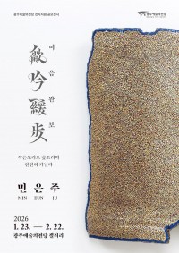 민은주: 미음완보微吟緩步 신규 등록 안내 안녕하세요. 플레이광주입니다.민은주: 미음완보微吟緩步 신규 등록 안내입니다. 민은주: 미음완보微吟緩步 장소광주예술의전당 갤러리 기간2026-01-23 (금) ~ 2026-02-22 (일) 시간공연 없는 날 10:00-18:00 공연 있는 날 10:30-19:30 (대·소극장 저녁 공연 시) 가격무료 바로가기 01.16 11:37
