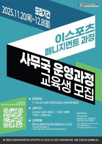 이스포츠 사무국 운영과정 신규 등록 안내 안녕하세요. 플레이광주입니다.이스포츠 사무국 운영과정 신규 등록 안내입니다. 이스포츠 사무국 운영과정 장소온라인(광주이스포츠교육원 공식 디스코드) 기간2025-12-10 (수) ~ 2025-12-11 (목) 시간19:00 ~ 20:00 가격무료 관람등급전체 관람가 바로가기 11.20 10:01