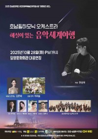 호남필하모닉 오케스트라 해설이 있는 음악세계여행 신규 등록 안내 안녕하세요. 플레이광주입니다.호남필하모닉 오케스트라 해설이 있는 음악세계여행 신규 등록 안내입니다. 호남필하모닉 오케스트라 해설이 있는 음악세계여행 장소담양문화회관 대공연장 기간2025-10-28 (화) 시간19:00 가격무료 관람등급전체관람가 바로가기 10.23 09:54