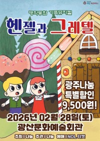 가족뮤지컬 〈헨젤과 그레텔〉 신규 등록 안내 안녕하세요. 플레이광주입니다.가족뮤지컬 〈헨젤과 그레텔〉 신규 등록 안내입니다. 가족뮤지컬 〈헨젤과 그레텔〉 장소광산문화예술회관 기간2026-02-28 (토) 시간11:00, 14:00, 16:00 가격VIP석 (예매가) 13,500원 R석 (예매가) 9,500원 관람등급24개월이상 바로가기 12.09 15:10