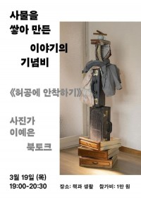 이예은 사진가 『허공에 안착하기』 북토크 신규 등록 안내 안녕하세요. 플레이광주입니다.이예은 사진가 『허공에 안착하기』 북토크 신규 등록 안내입니다. 이예은 사진가 『허공에 안착하기』 북토크 장소책과생활 기간2026-03-19 (목) 시간19:00 ~ 20:30 가격10,000원 관람등급전체관람가90분 바로가기 02.26 15:41