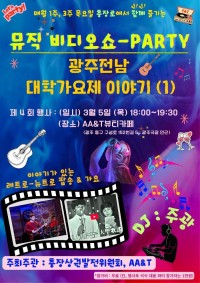 | 안녕하세요. 플레이광주입니다. 제4회 충장로 뮤직 비디오쇼-PARTY 〈광주전남 대학가요제 이야기 1〉 신규 등록 안내입니다. |