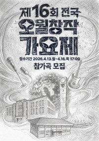 제16회 전국 오월창작가요제 참가곡 모집 신규 등록 안내 안녕하세요. 플레이광주입니다.제16회 전국 오월창작가요제 참가곡 모집 신규 등록 안내입니다. 제16회 전국 오월창작가요제 참가곡 모집 장소5.18민주광장 기간2026-04-13 (월) ~ 2026-04-16 (목) 시간접수기간 4월13일 ~ 4월16일 17시 까지 가격무료 바로가기 11시간전