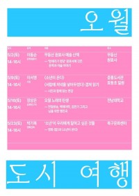 사월과 오월 도시 여행 신규 등록 안내 안녕하세요. 플레이광주입니다.사월과 오월 도시 여행 신규 등록 안내입니다. 사월과 오월 도시 여행 장소무등산 원효사 / 중흥도서관 효동초 일원 / 전남대학교 / 북구문화센터 기간2026-05-02 (토) ~ 2026-05-23 (토) 시간14:00 - 16:00 가격회차별 10,000 관람등급전체관람가 바로가기 04.23 17:53