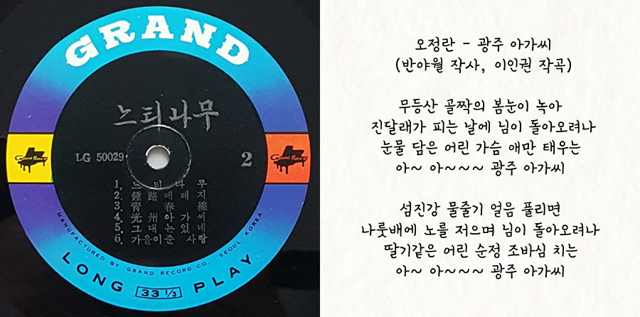 두 번째로 살펴 볼 노래는 오정란의 ‘광주 아가씨’다