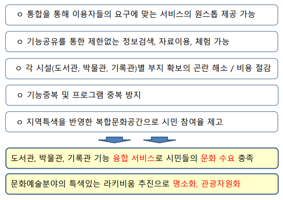 ㅇ 기본적으로는 도서관+박물관+(기록관) 형태의 복합문화공간으로서 전시, 체험활동, 교육, 세미나, 공연, 소모임 등이 다양하게 펼쳐지는 커뮤니티형 라키비움(카페& SHOP포함)