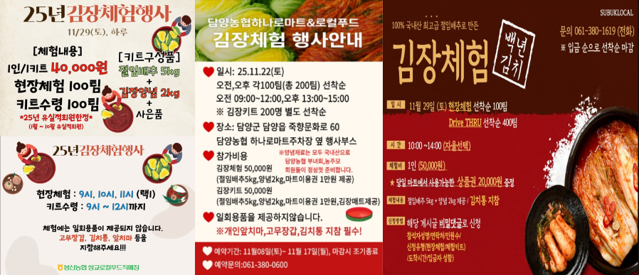 김장체험행사 모음: 봉산농협쌍교로컬푸드직매장, 담양농협하나로마트, 수북로컬푸드직매장 순
