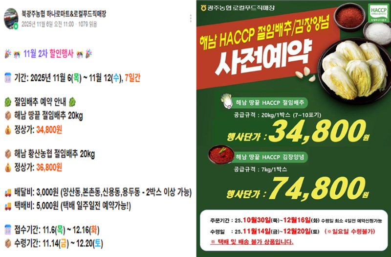 북광주농협과 광주농협동광주점의 절임배추 특판