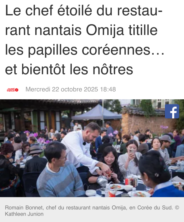 <낭트의 오미자 레스토랑 미슐랭 원스타 셰프 로망 보네가 한국에서 며칠을 보냈다. 그는 프랑스 요리에 필수적인 한국적 감성을 더해 소개했다.