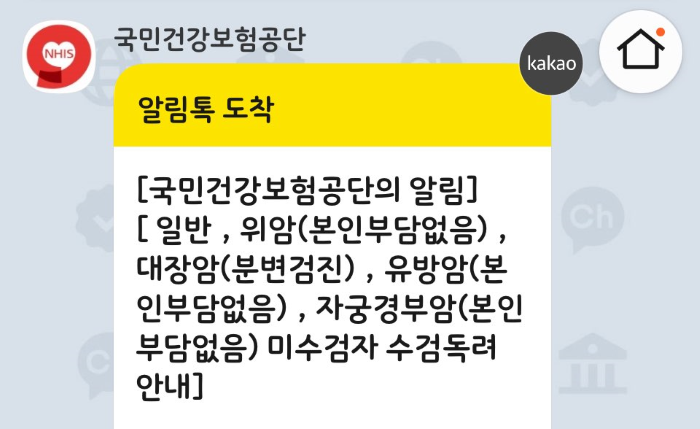 국민건강보험공단 미수검 독려 안내 Ⓒ갱린이뽀기미
