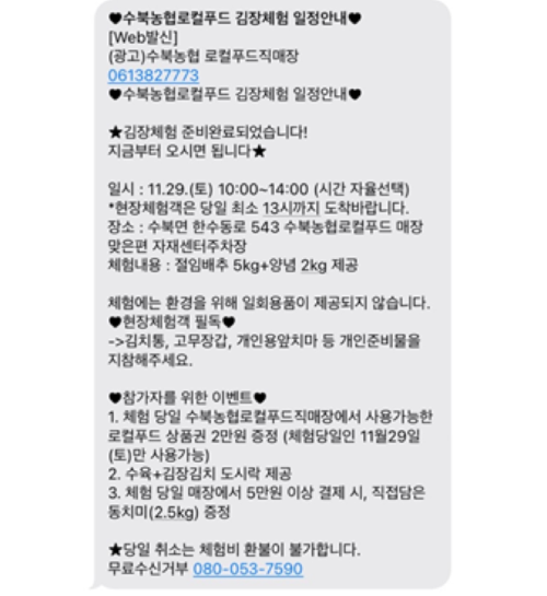 띵동. 문자 소리와 함께 ★김장체험 준비완료되었습니다! 지금부터 오시면 됩니다★