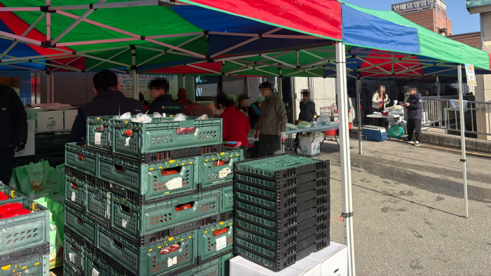 그렇게 나는 서둘러 집을 나섰다. 뭐 읽어보지도 못하고 집을 나서 도착했다. 매장에는 “재료의 자부심 김장대축제, 수북농협로컬푸드직매장 김장행사”라는 플래카드가 펄럭이고 주차장도 만차다. 카트가 없다. 쇼핑하는 사람들이 한가득이다. 분명 평소의 5배는 사람이 있었다. 명절때보다 많은 숫자였다. 10:00인데, 벌써? 나만 김장대축제 처음인거야? 두리번두리번 놀란 마음에 주변을 살핀다. 그런데 매장 안에는 김장체험 매대가 없다. 다시 문자를 읽어보니 길 건너편 주차장이라고 한다. 아차! 어서 나가보자!