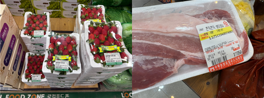 5만원을 채울 수 있는 가장 빠른 방법! 담양은 딸기지! 토경 딸기를 얼른 하나 담았다. 그리고 계획대로 수육용 오겹살을 담았다. 아직 5만원이 다 차지 않아 파티용 음료들을 담으니 장바구니는 6만원을 훌쩍 넘어섰다. 아이고, 이러다 가산탕진하겠네! 얼른 매대로 가서 계산을 하고 동치미를 받아 집에 왔다.