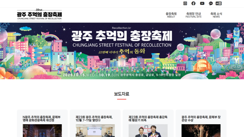 올해 제23회 광주 추억의 충장축제가 ‘추억의 노래’를 주제로 오는 10월 7일부터 11일까지 열린다. 지난 22년간 축제가 이어져 오면서 호남권 최대 도시 축제이자 국내 대표 축제로서 자리매김을 해왔는데, 정말로 무에서 유를 창출한 성공적인 축제로서 발전해 온 점은 긍정적이다.
