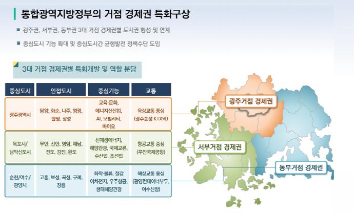 < 행정통합 정책토론회에 제시된 '3대 거점' 사진:전남연구원 >