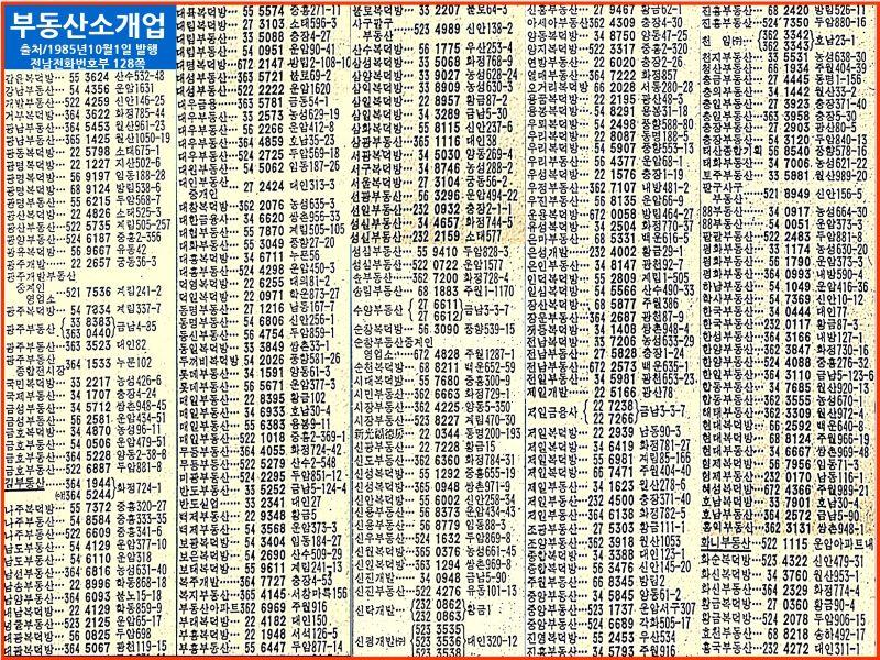 < 1985년 전화번호부에 기록된 광주시 부동산업체 >
